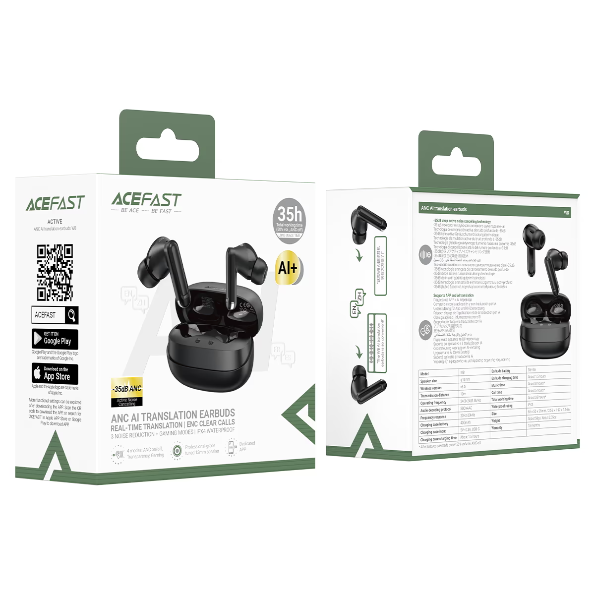 ACEFAST W8 ANC AI translation TWS earbuds.